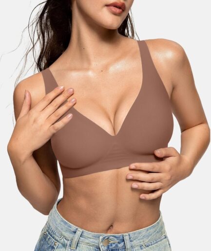 Womens Seamless Push Up Bras No Underwire Full Coverage Comfortable Bra V Neck Wireless Everyday Bra