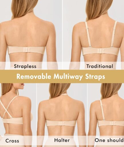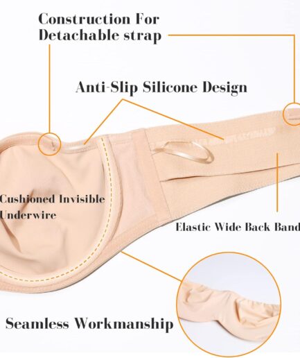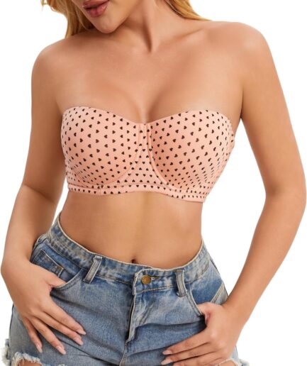 Womens Strapless Bras Push Up Bandeau Bra Non Slip Wireless Supportive Padded Bras Seamless Comfortable Tube Bra