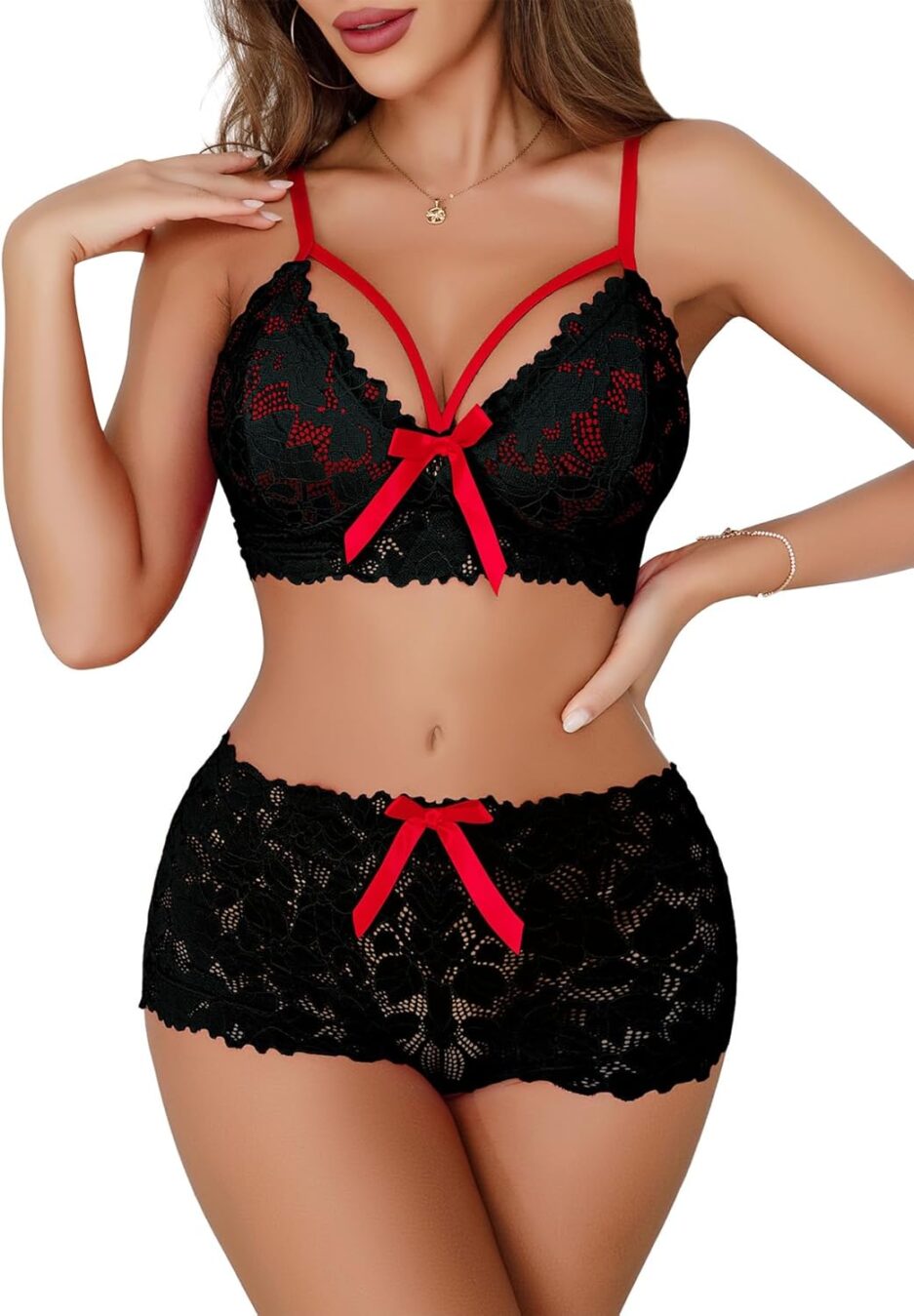 Sexy Strappy High Waist Floral Lace Pajamas Lingerie Set Outfits